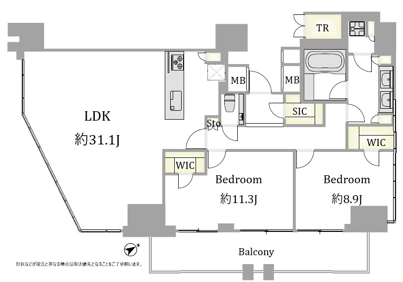 - バルコニー面積