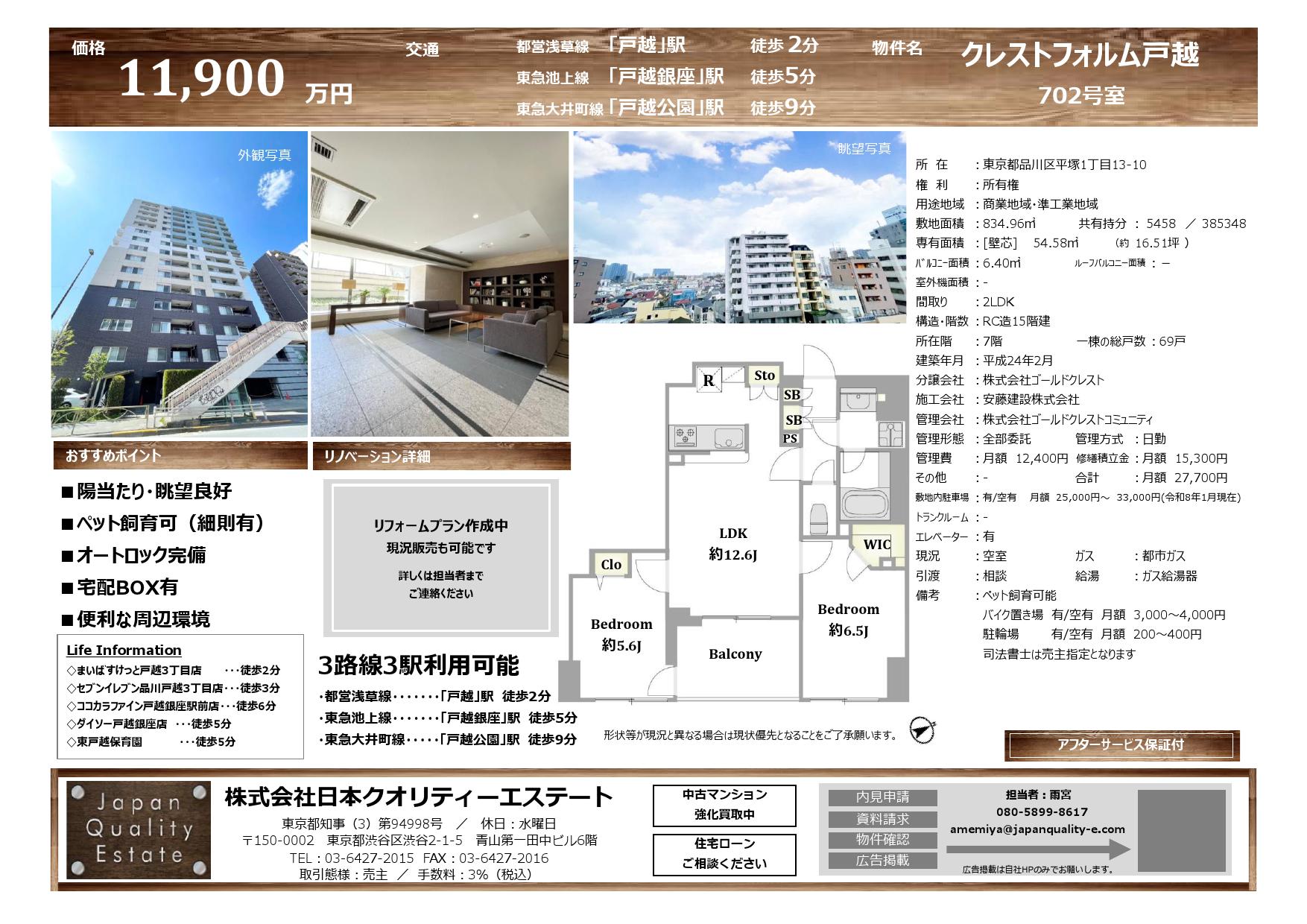 クレストフォルム戸越702号室